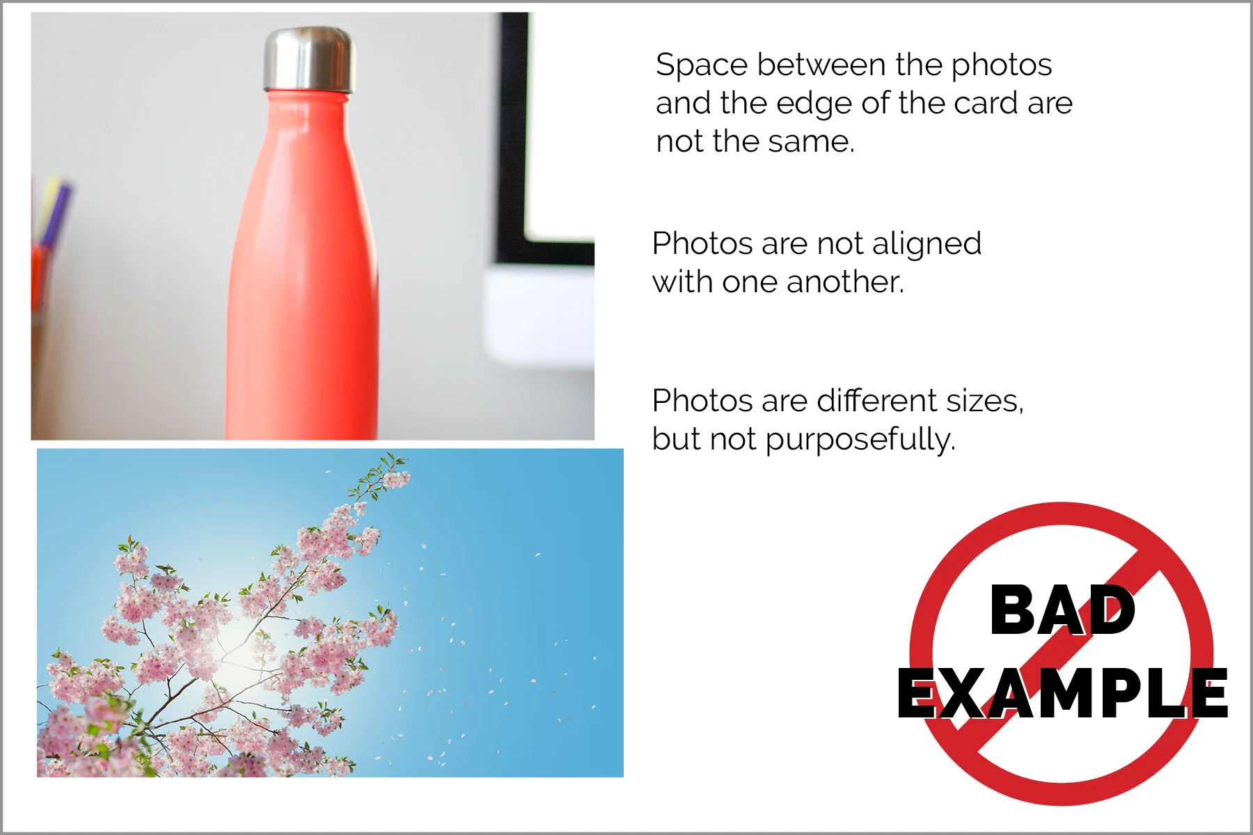 If you use different-sized images, make sure they are purposefully different sizes—not just slightly. Slight variation in size makes it look like an accident.