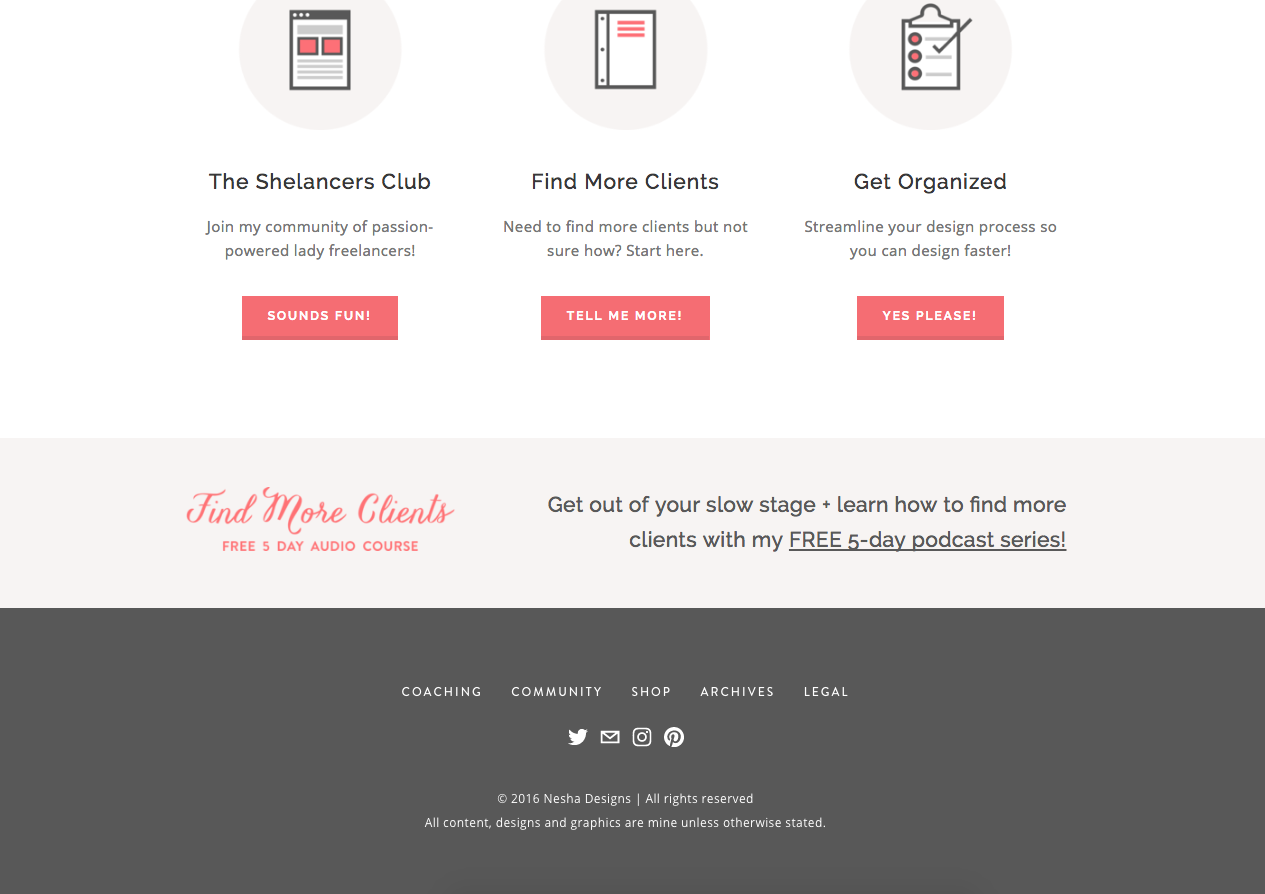 Here's an example of some action items at the bottom of a portfolio page on White & Salt's website.