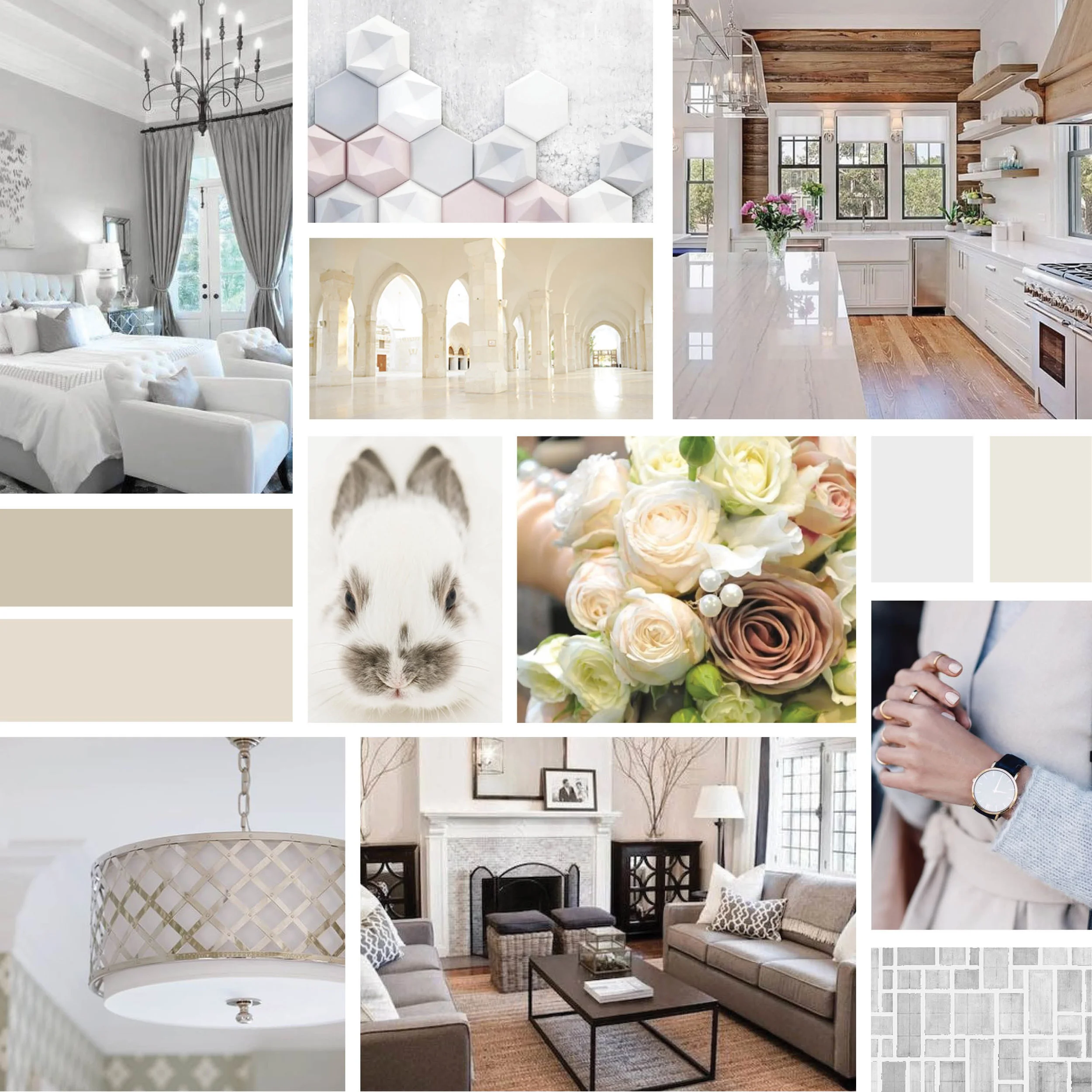 Beth also knew she wanted to keep it simple using colors like white, cream, gray and charcoal. I LOVE a light, airy design so I was so excited to read her answers on my questionnaire. Based on her feedback, here’s a look at the inspiration board I put together for her project: